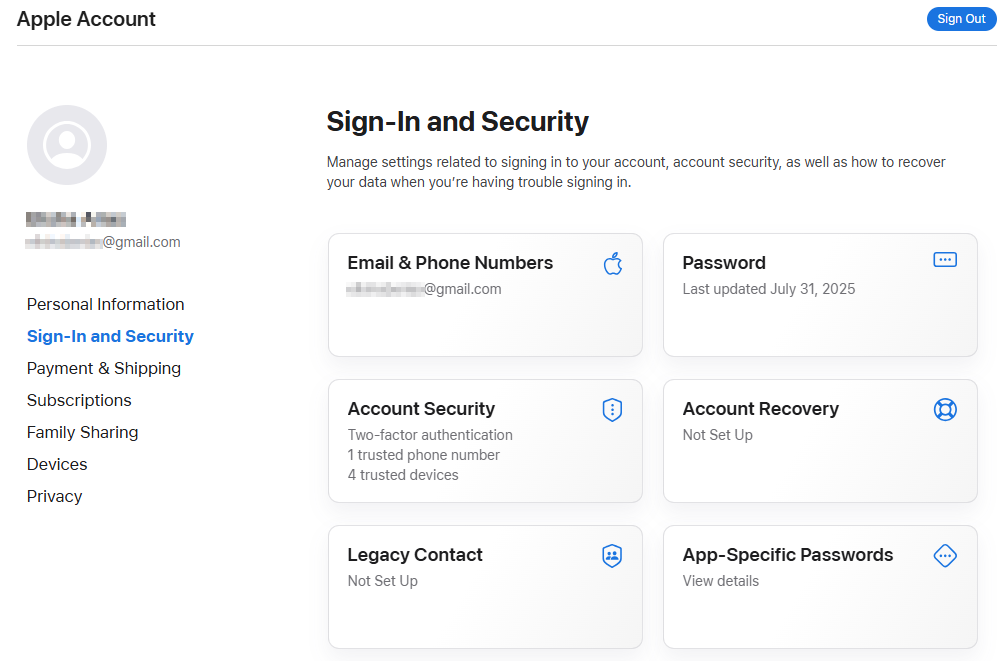 - Go to Sign-in and Security
